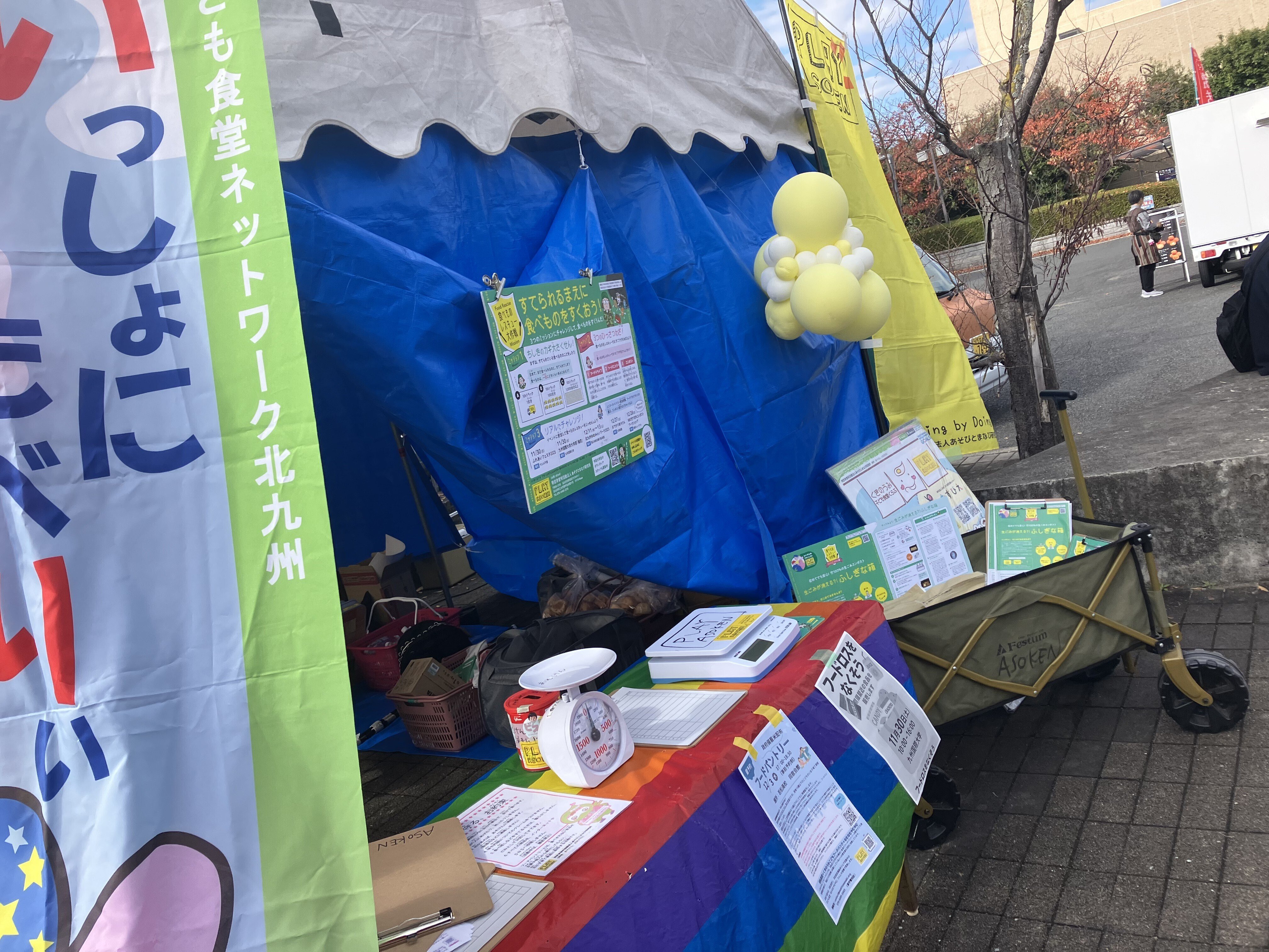 11/30はふたつの現場で活動しました九州国際大学 学園祭会場にて 松本ゼミ&BBSサークルとあそけんのフードパントリーがコラボ。学生さんたちプロデュースの「食ロスクイズラリー」大好評でした🌟