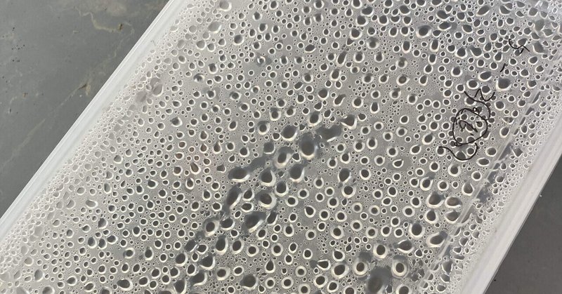 朝夕の冷え込みも、なんのその!びっしり結露している水滴💧たちが、元気の証😊あんなにたくさん与えたお野菜などなどどこにいったかな?