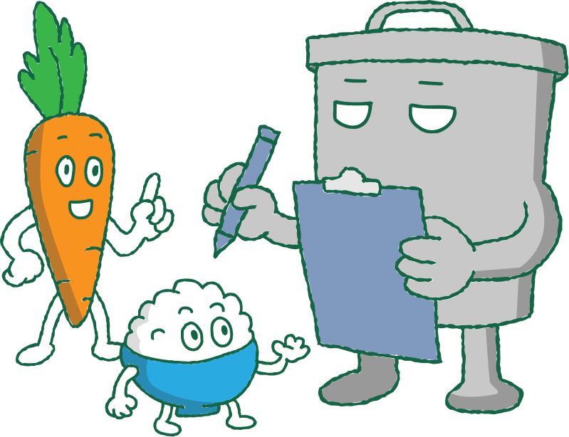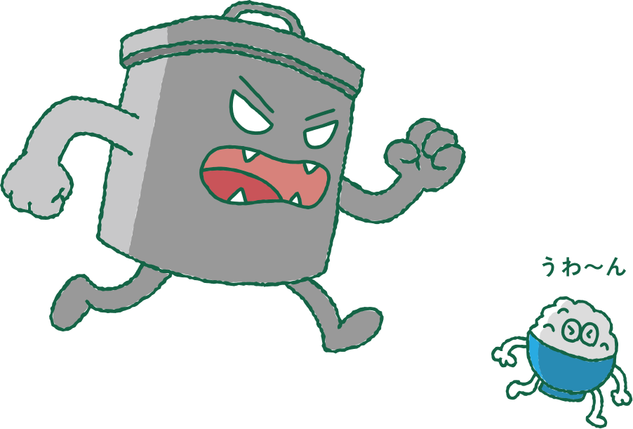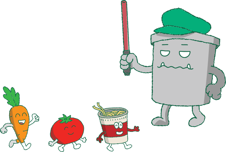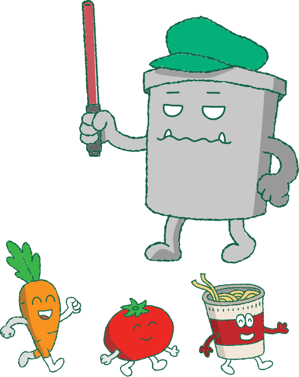 さあ、いっしょに食べものをすてない