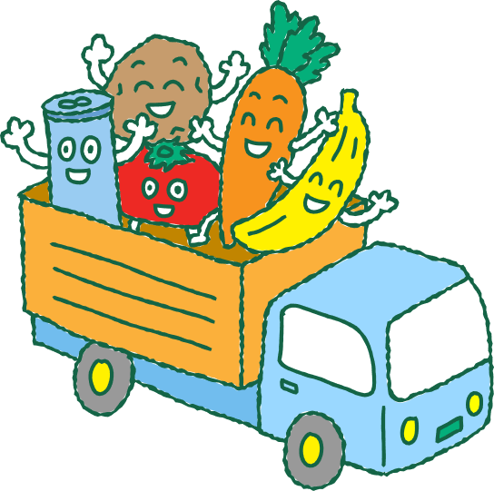 家であまった食べものを持ち寄って集め、食べものが必要な人にとどける活動だよ。