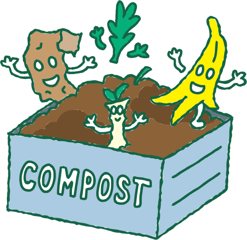 台所から出る生ごみを、微生物の力で土にもどして、野菜や花が育つ肥料をつくるよ。